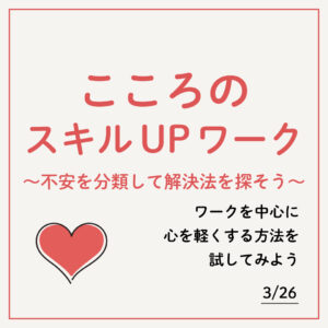 3/26 こころのスキルUPワーク〜不安を分類して解決法を探そう〜